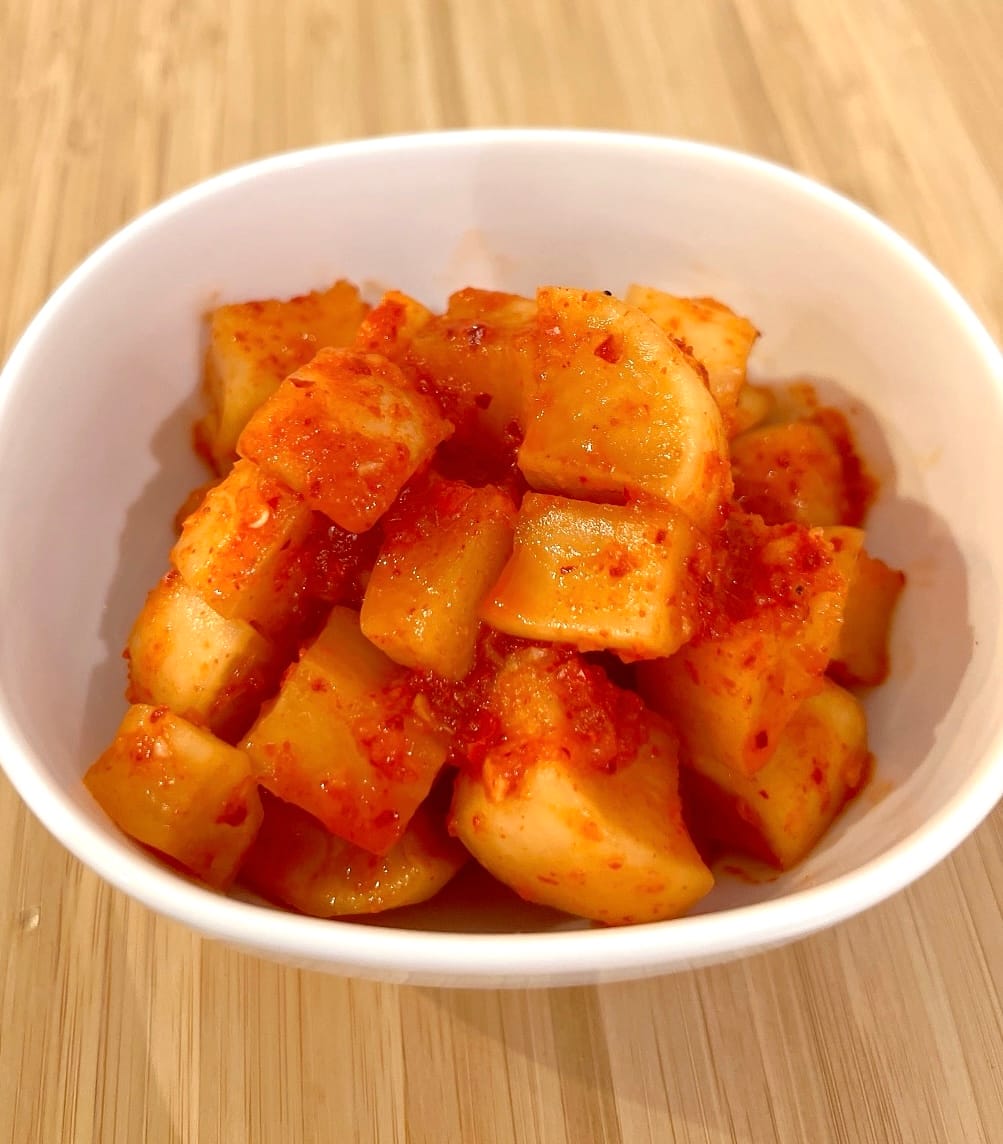 Kkakdugi er en type kimchi laget av kuttet reddik. Den er også meget populær hos koreanere og er spesielt godt egnet for de som liker å ha litt crunch når de spiser! En perfekt siderett for alle. Laget på bestilling.
